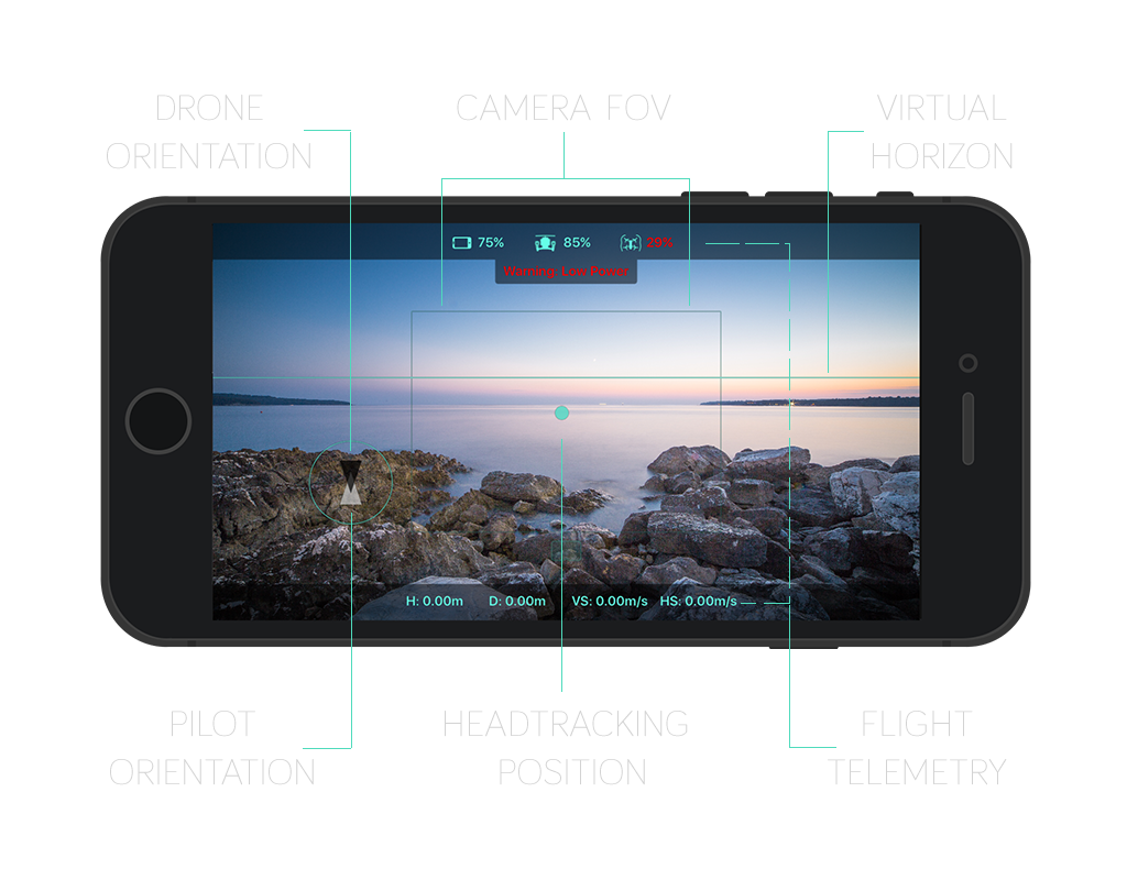 The Video signal can be switched between the drone's camera and that of the iPhone at any time. (Coming Soon)